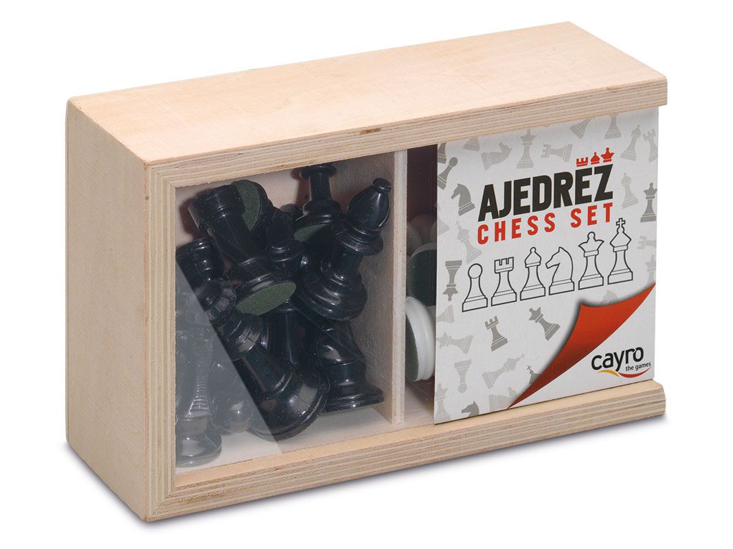 Accesorios ajedrez nº3 en caja de madera.