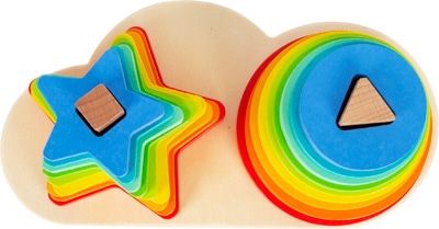 ¡Colorido como el arcoíris! En este juego debes ubicar las formas una encima de la otra según el tamaño, para que los colores del arcoíris se pongan en el orden correcto. Apilando, encajando y clasificando, los niños aprenden de forma lúdica a conocer diferentes formas, colores y tamaños; entrenando así la motricidad fina y la coordinación mano-ojo.