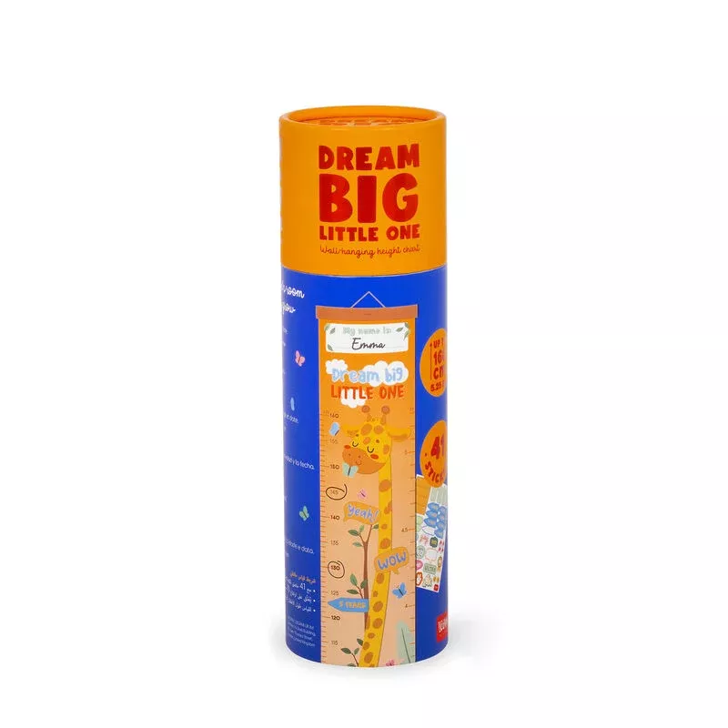 Crecer es una aventura increíble. Por eso no hay que perderse ni un centímetro. El Metro de Pared - Dream Big Little One - Giraffe de Legami está pensado para acompañar a los niños en cada fase de su crecimiento, midiendo su altura y celebrando cada meta con uno de los 41 adhesivos para escribir el nombre, la edad y la fecha. ¡Una aventura larga y emocionante a medida de los pequeños de la casa!