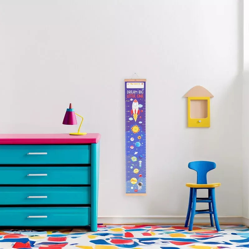 Crecer es una aventura increíble. Por eso no hay que perderse ni un centímetro. El Metro de Pared - Dream Big Little One - Space de Legami está pensado para acompañar a los niños en cada fase de su crecimiento, midiendo su altura y celebrando cada meta con uno de los 41 adhesivos para escribir el nombre, la edad y la fecha. ¡Una aventura larga y emocionante a medida de los pequeños de la casa!