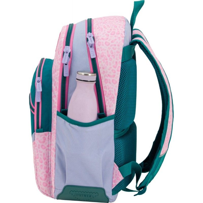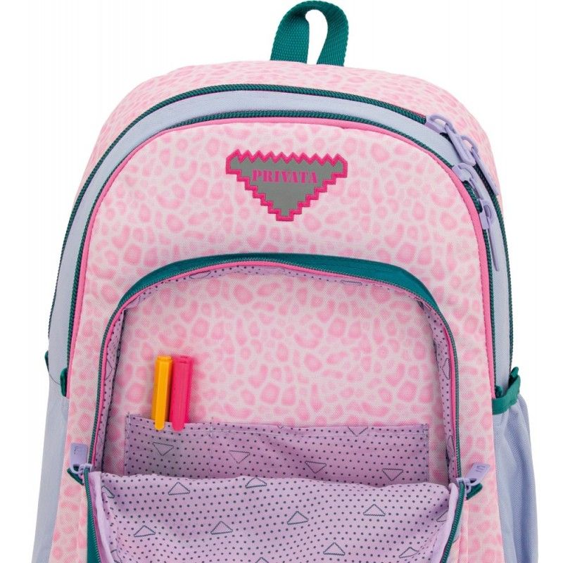 • Mochila escolar doble cuerpo con dos compartimientos de gran capacidad y apertura con cremallera. El comportamiento principal tiene un bolsillo interior acolchado para contener laptops o tablets. Posee dos cantoneras de PVC en los extremos de la parte inferior para reforzar la base. Bolsillo frontal con organizador para bolígrafos y útiles escolarespequeños. Bolsillo en la lateral derecha para transportar botellas. Adaptable a carro gracias a su banda acolchada en suparte posterior. Espalda y tirantes ergonómicos con acolchado extra y material transpirable.