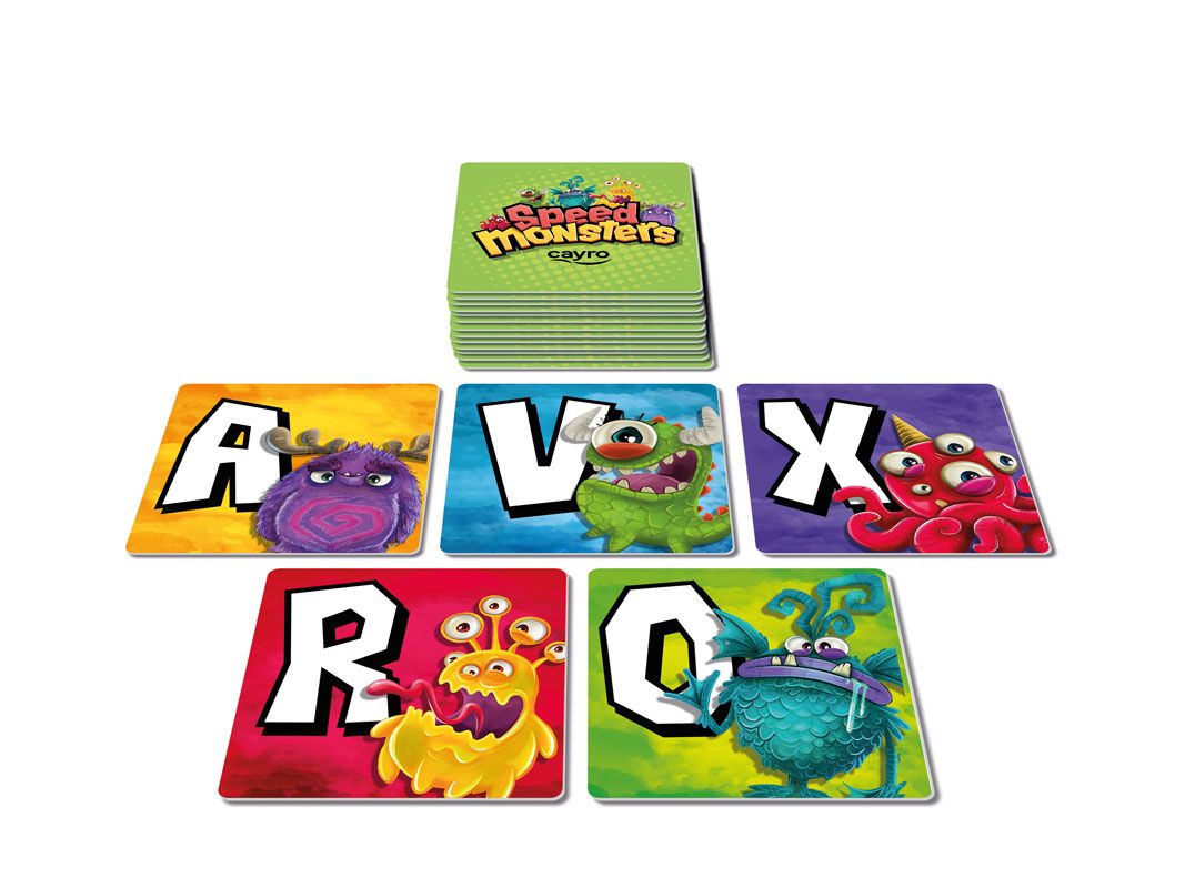 Speed Monsters es un juego de rapidez y memoria. Se el primero en deshacerte de todas tus tarjetas y serás el ganador. Pero para ello has de ser el más rápido en observar las coincidencias de monstruos o letras, sin olvidarte ninguna de las palabras que hemos ido diciendo con la letras que aparecen en las tarjetas.